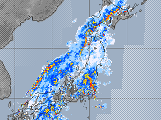 | ・15日10時45分 気象レーダー | ・南北に連なる豪雨ゾーンが東に移動中か!? |