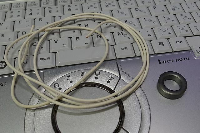 | ・手持ちの白い電線(0.75sq)と、トロイダルコア |