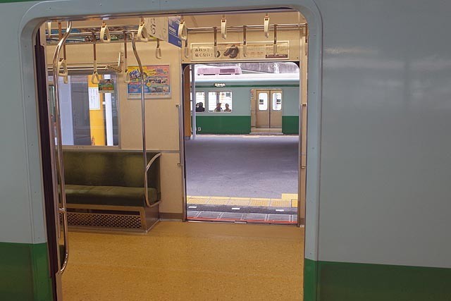 うそ~、だからこの電車は両方のドアを開けて通り抜けができるようにしていたのか! 皆さん手慣れているようで、この手前の電車をスルーして奥の電車に行ってしまいましたが、初心者の私は呆然としてしまい、足が動かない(笑)!