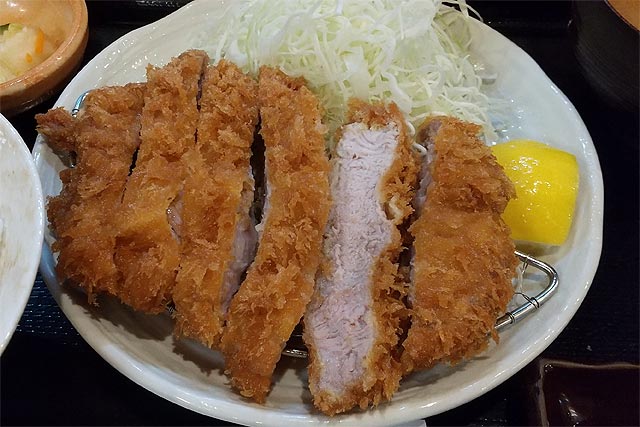 分厚いので揚げ時間は10分ほど。開店と同時に揚げ始めての提供なので、ポールポジションを取れなかったときの食事提供は(多少は並行で揚げるとはいえ)壊滅的に遅い。