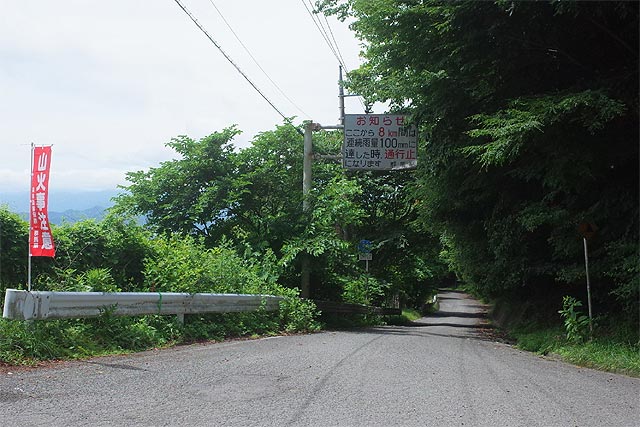 | ・御荷鉾スーパー林道の入り口。バイクなら右折一択でしょ! |