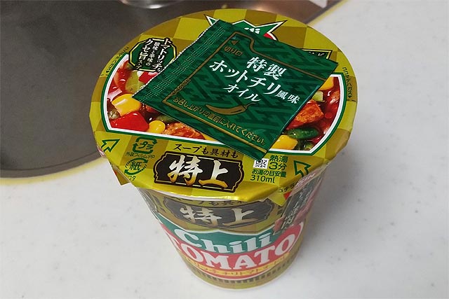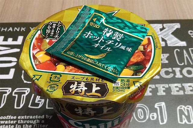 チリトマト版も別添えのオイルがついている・・・・辛くするやつみたいですね。