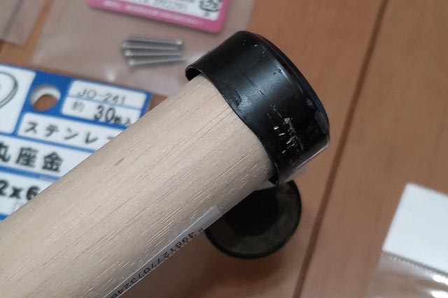 外殻にドリルで穴あけをするためには外殻をしっかりと固定する必要がある・・・・そこで木の棒も買ってきました。