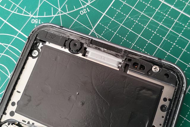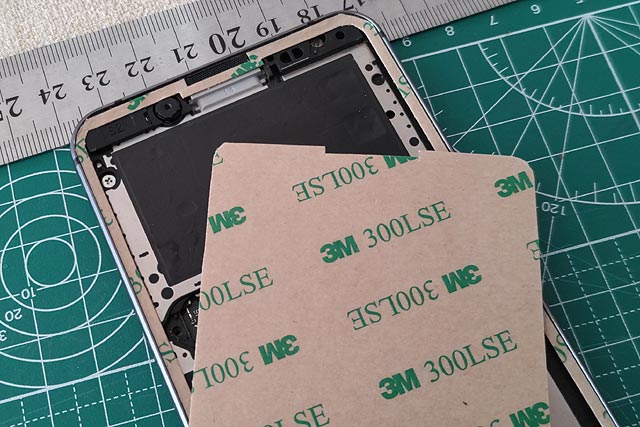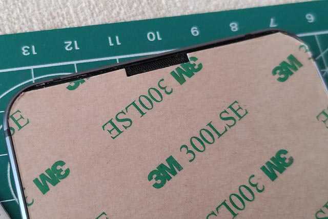 液晶パネル上部にはスピーカーが設置してあるので、そこを避けるように両面テープを設置しなければなりません。