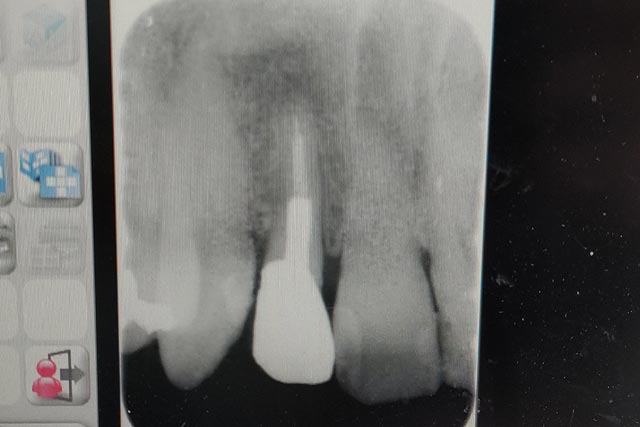 ターゲットの差し歯のレントゲン写真を撮影し、今後の医療方針の確認。