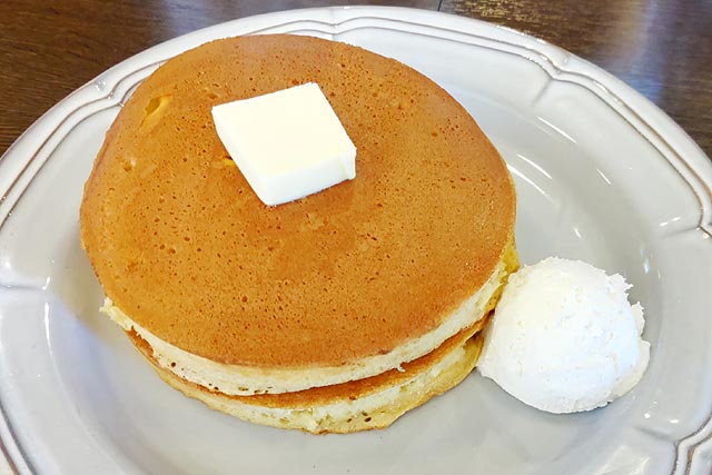 都度焼きのホットケーキって手間がかかるので、最近の効率優先のチェーン店では置いていないことが多いんですよね。